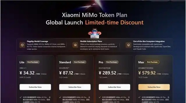 8、小米MiMo大模型发布Token订阅套餐:四档位覆盖全模态,月费39元起